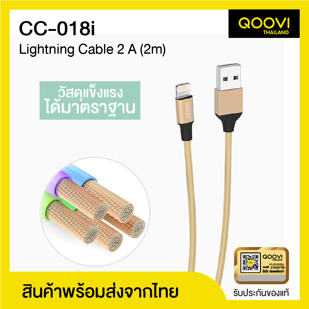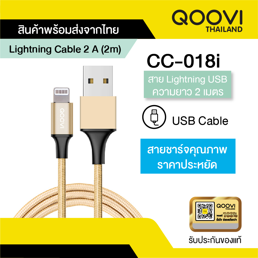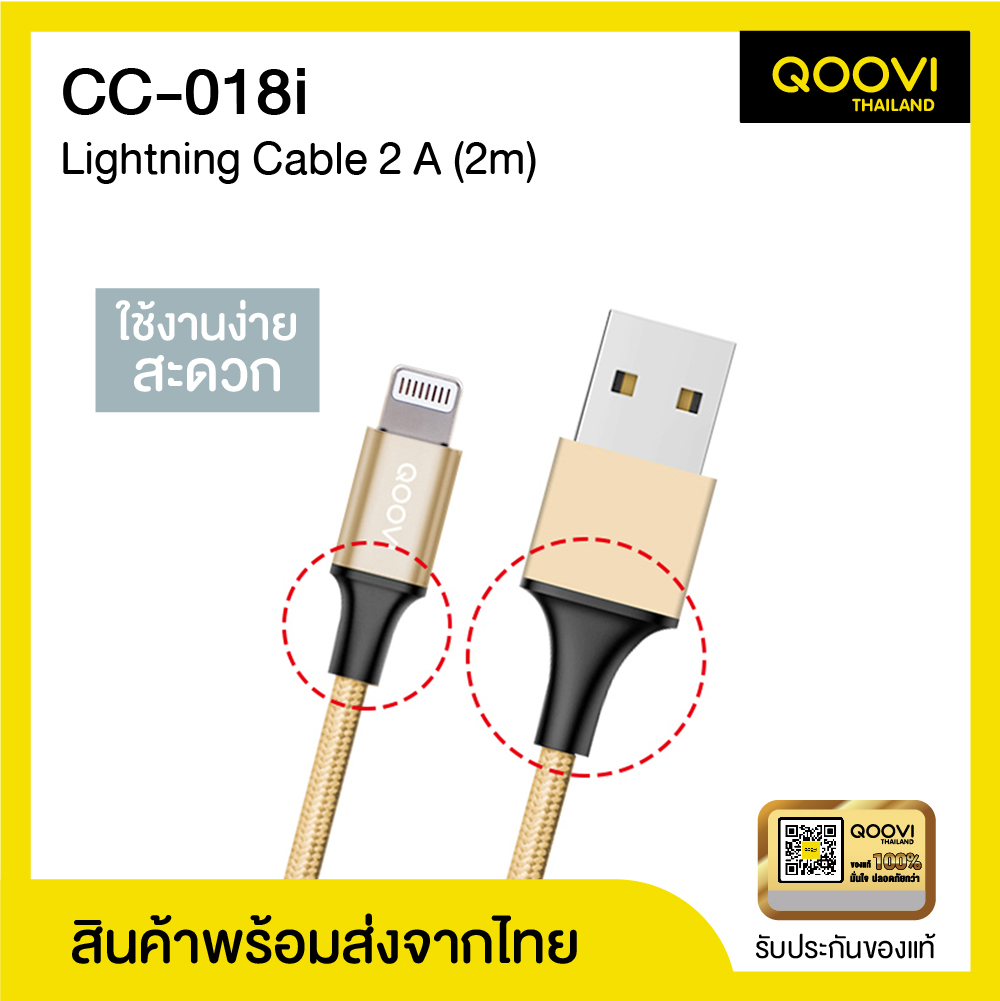 QOOVI สายชาร์จ ความยาว 2 เมตร รับประกันสินค้า 1 ปี